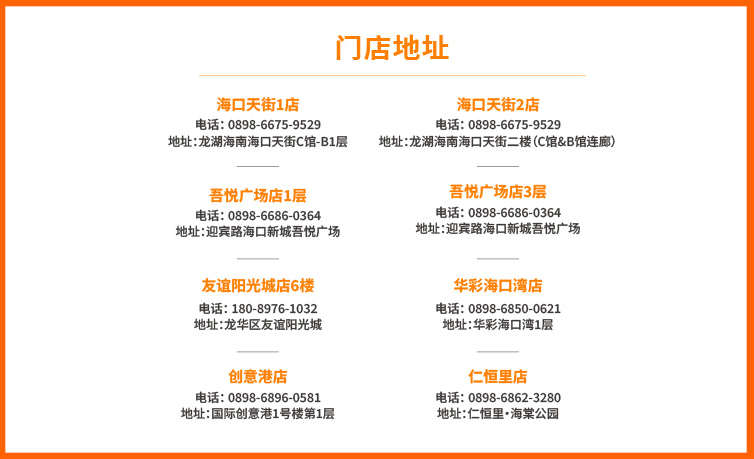感谢您对我们的信任与关注,面包新语目前在海口6大热门商圈经营有8家门店,产品选购及问题咨询可就近拨打门店电话;我们非常乐意听取您的意见,并十分期待收到您的反馈。